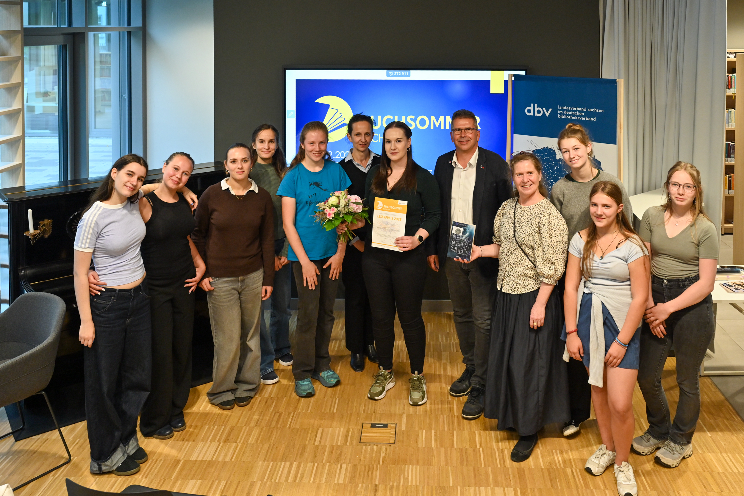 Seit der Gründung des Buchclubs durch Ines Klisch und einer buchbegeisterten Schülerin 2023 ist einiges passiert: Als besonderes Highlight bilden wir die Jury für den Leserpreis des Buchsommers Sachsen 2025 und 2026. Unsere Aufgabe ist es, aus zahlreichen Büchern unsere fünf Favoriten zu wählen. Hierbei ist es besonders spannend, die verschiedenen Meinungen aller Mitglieder zu besprechen. Jedes dieser fünf Bücher erscheint daraufhin in allen teilnehmenden sächsischen Bibliotheken. Anschließend kann man online für eines dieser ausgewählten Bücher abstimmen. Das Buch mit den meisten Stimmen gewinnt den Buchsommer-Leserpreis. Weiterhin waren einige Mitglieder der Buchflüsterei Gast beim Podcast „Unter Büchern” des MDR. Und wir haben schon viele Pläne, was wir nach unserer Zeit als Jugendjury unternehmen wollen.